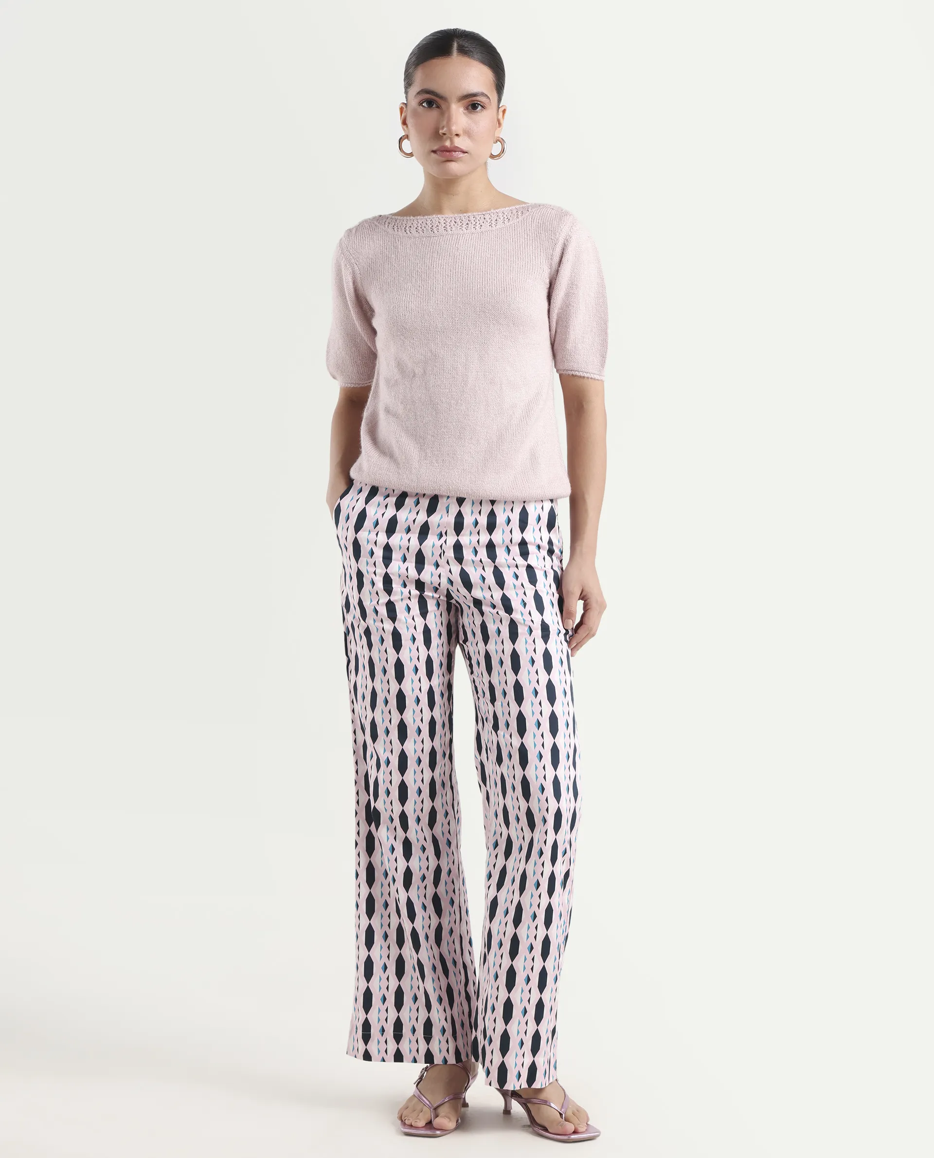 Rareism Women's Magia Light Multi Viscose Geometric Print Ankle Length Wide Leg Trouser