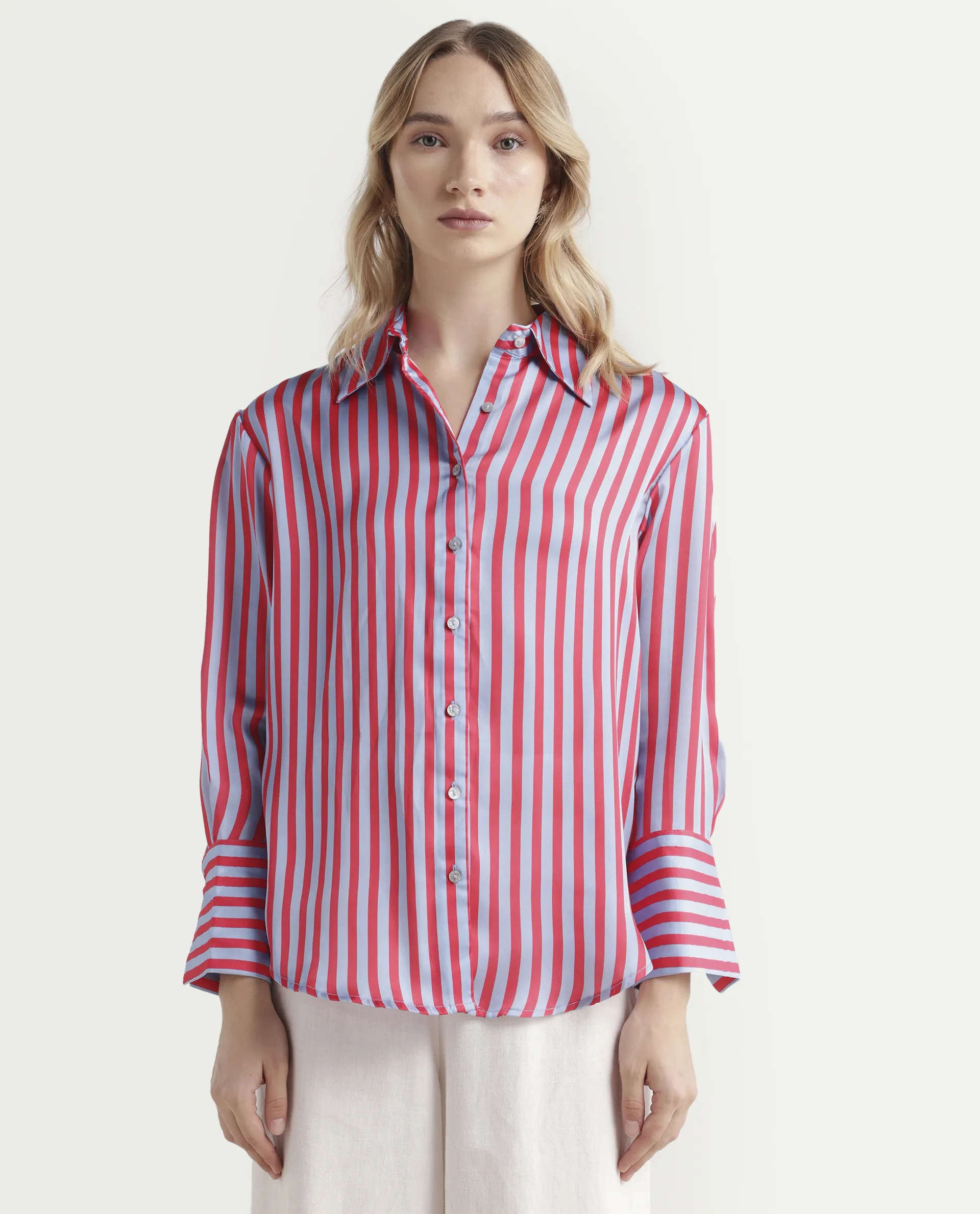 This womens shirt from RAREISM carries a contemporary and minimal charm. Its neat styling keeps the outfit looking fresh and composed. A reliable pick for someone who prefers a soft, modern aesthetic.