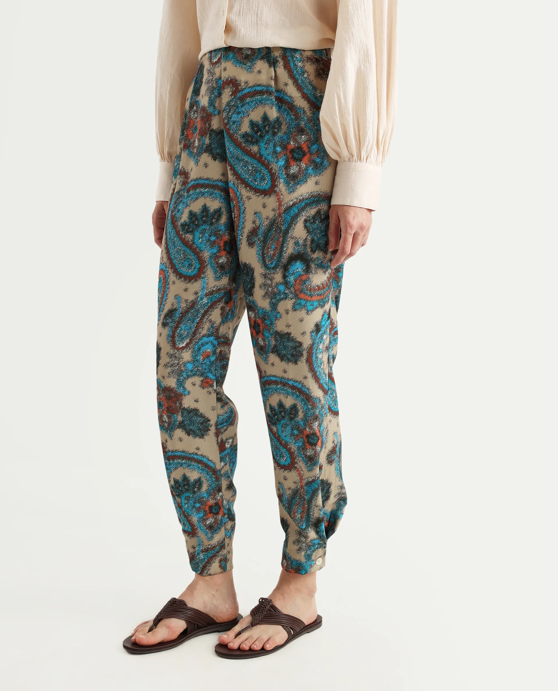 Rareism Women's Posrita Multi Polyester Paisley Print Ankle Length Straight Fit Trouser